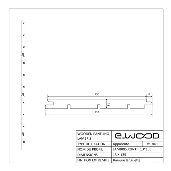LAMBRIS BOIS EPICÉA NATUREL - - BRUT JOINTIF 13*135*2370