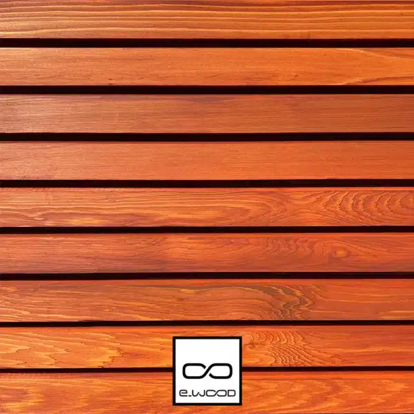 De par ses qualités évidentes de durabilité, E-wood propose cette essence en finition exclusivement naturelle, cependant, notre service sur-mesure “Up to you®” vous permet si vous le souhaitez, l’application optionnelle d’une finition par saturateur pour préserver la teinte originelle ou bien pigmenter la surface du coloris de votre choix.