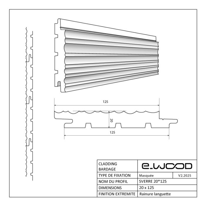 Le parement SVERRE est un revêtement mural, au design résolument contemporain, avec une alternance de stries de largeurs et de profondeurs différentes. Conçu pour une pose aisée par emboitement, il est rainure languette pour une finition parfaite. Il se pose aussi bien à la verticale, qu'à l'horizontale. Profil conçu pour une pose en fixation masquée pour une esthétique parfaite.